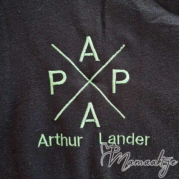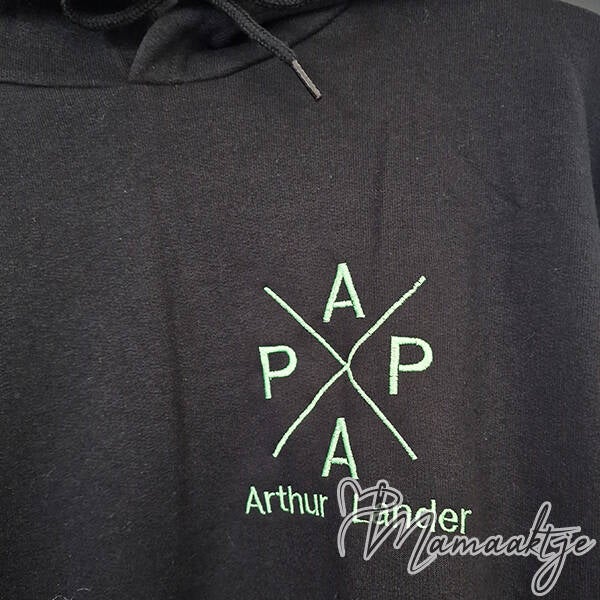 Onze geborduurde trui met de tekst "Papa", aangevuld met maximaal vier namen van zijn kinderen, is het perfecte geschenk!